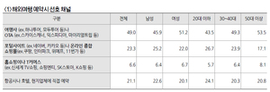 소비자들이 가장 선호하는 해외여행 예약 채널은 무엇이며, 어떤 예약채널을 어떻게 이용하는지 살폈다.여행사·OTA 선호도 상승 해외여행 예약 단계에서 소비자들이 가장 선호하는 채널은 지난해 조사 때와 마찬가지로 여행사나 OTA(49.0%)인 것으로 나타났다. 지난해 득표율(47.4%)보다 소폭 상승했다. 여행사나 OTA에 대한 선호 경향은 성별과 연령에 상관없이 비슷한 것으로 나타났다. 소비자들은 효율적인 예약 및 결제 시스템(중복응답, 46.5%), 합리적인 가격(43.8%)과 함께 여행상품을 활용해 편하게 여행(38.4%)할 수