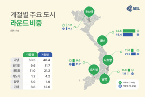 베트남은 여름과 겨울을 막론하고 인기 있는 골프 휴양지로 손꼽힌다. 글로벌 골프 테크기업 AGL이 여름(7~9월)과 겨울(12~2월) 시즌 AGL의 제휴 채널을 통해 베트남 골프 여행을 다녀온 글로벌 골퍼들의 트렌드를 분석했다.베트남에서 가장 인기를 얻고 있는 골프 목적지는 다낭이다. 다낭은 여름과 겨울 시즌 베트남 골프 예약 전체 중 각각 63.5%, 48.4%를 차지하며 압도적으로 1위 목적지에 이름을 올렸다. 몽고 메리 링크스, 레전드 다낭처럼 상급 골프장도 많고 골프 외에 다른 즐길 거리도 많아 오전 라운드를 마치고 오후 관