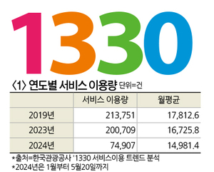 한국을 여행하다 궁금한 사항이 생기면 관광안내전화 ‘1330’을 통해 도움을 받을 수 있다. 문화체육관광부와 한국관광공사가 ‘1330 관광통역안내’로 문의 받은 24만여건의 관광 문의 데이터를 분석해 ‘1330 서비스 이용 트렌드 분석서’를 발간했다. 내외국인 관광객의 관심과 요구사항을 파악하고 이에 대응할 수 있을 것으로 기대된다.1330 서비스 이용을 살펴보면 코로나 이전인 2019년 21만3,751건으로 가장 많았다. 코로나가 끝난 2023년은 20만709건, 올해 5월20일까지는 7만4,907건의 문의가 들어오며 회복 중이다